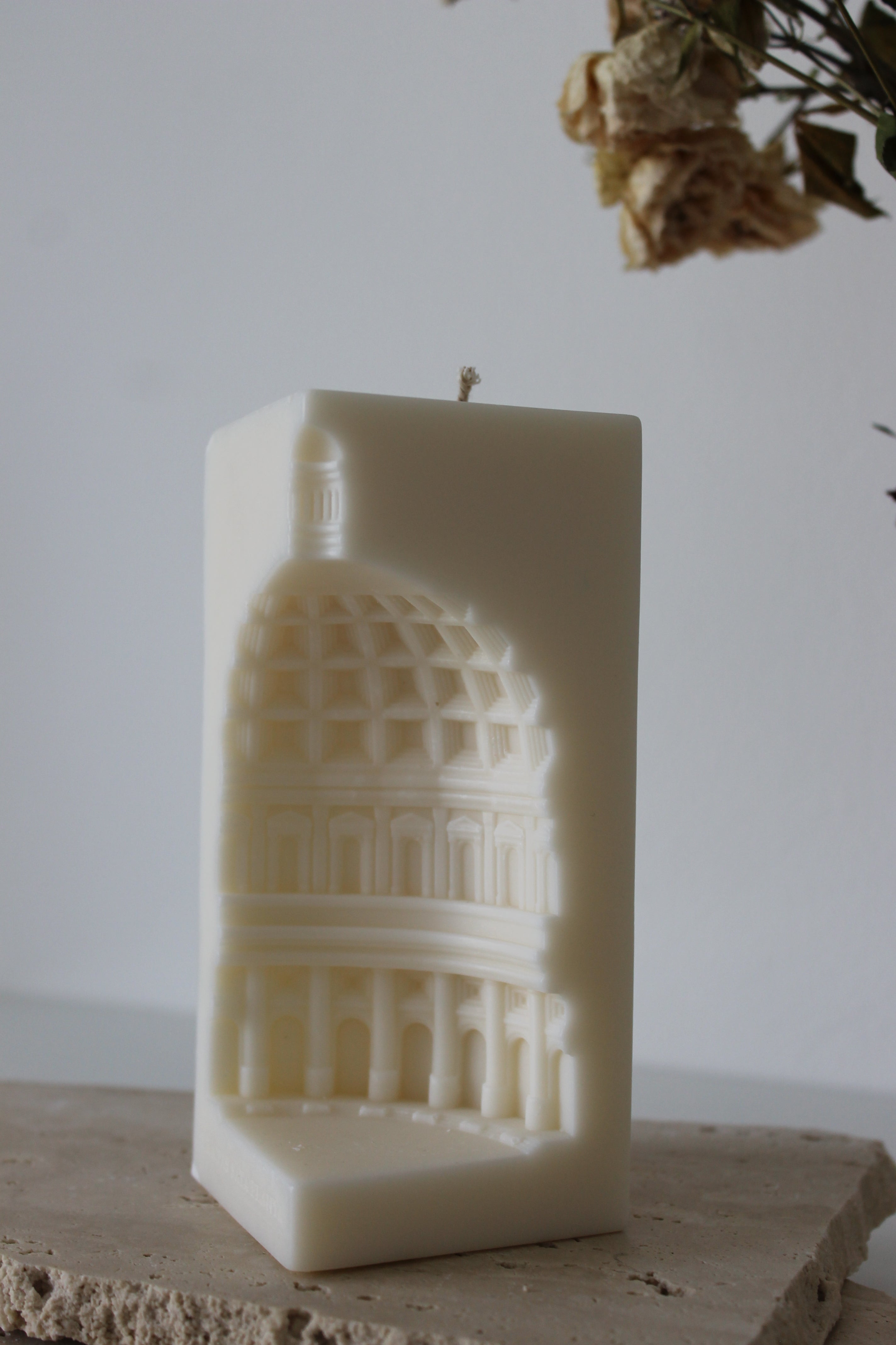 Made from high-quality natural wax, it serves as both a functional candle and a stunning decorative piece. Whether placed on a mantel, coffee table, or as a centerpiece, the Duomo Candle adds a touch of heritage, culture, and refinement to your home.
